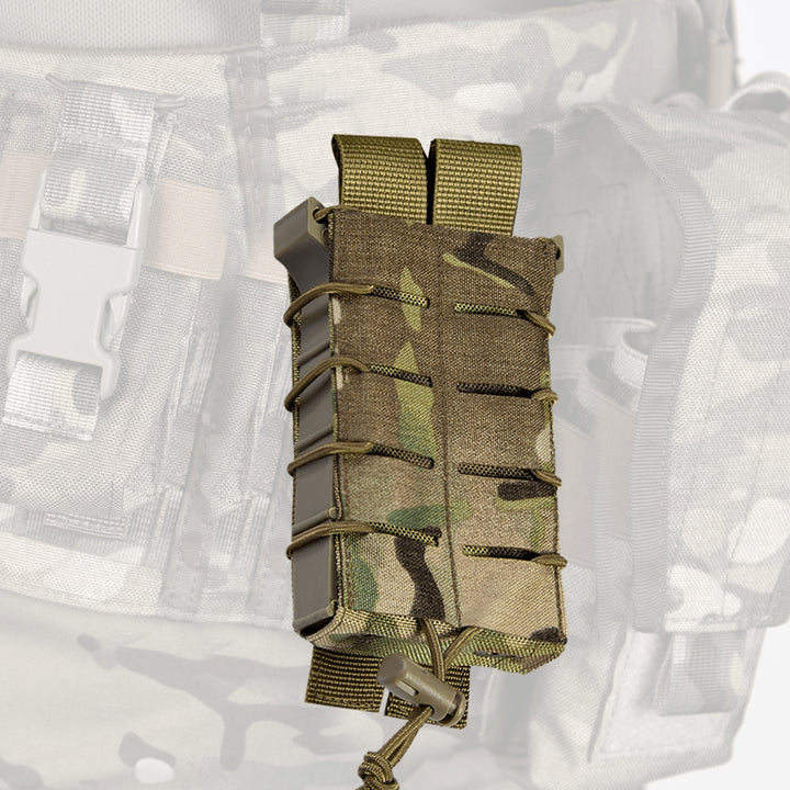 The Fastmag LC Multicam Magazine Pouch (Model 8450) is a professional open pouch designed for quick access to magazines, compatible with various rifles including AK-47, AKM, AK-74, AR-15, and AR-10. This pouch is an essential addition for tactical use or everyday carry.