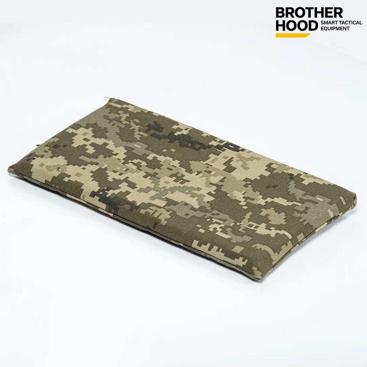The Pixel 1.0 ballistic plate pocket by Brother Hood is a functional gear component designed for external attachment to vests or chest rigs. With a size that fits standard ballistic plates of 6” x 12”, it offers versatility for various carrying systems in field conditions.