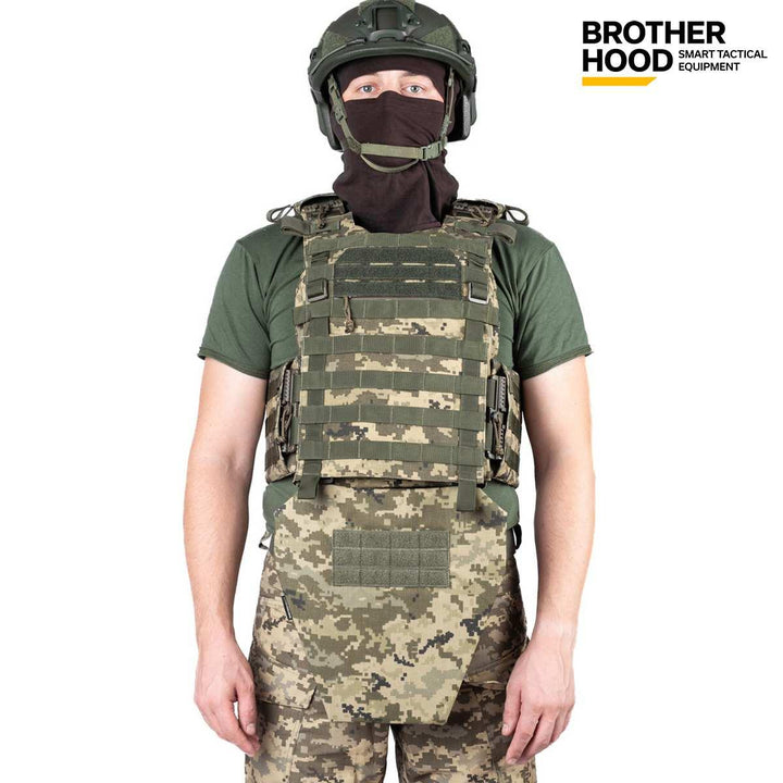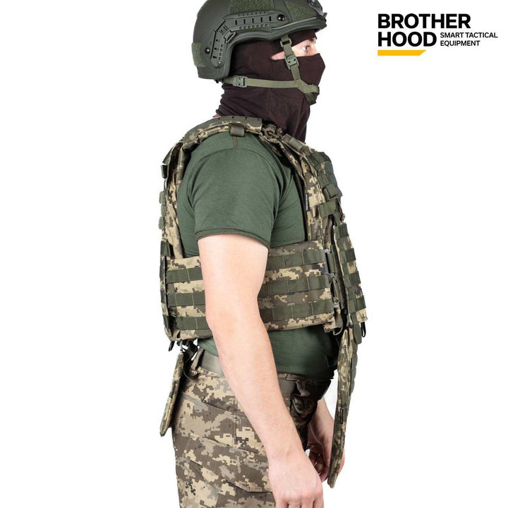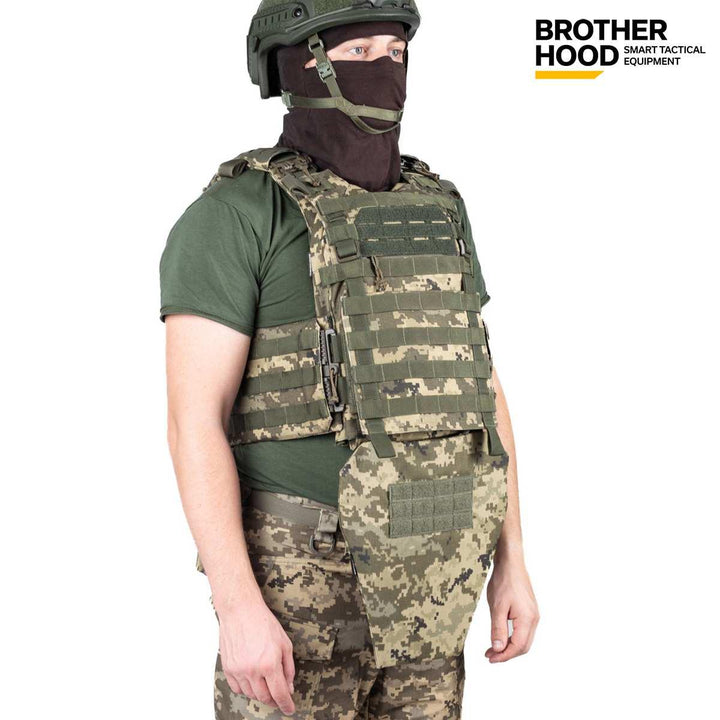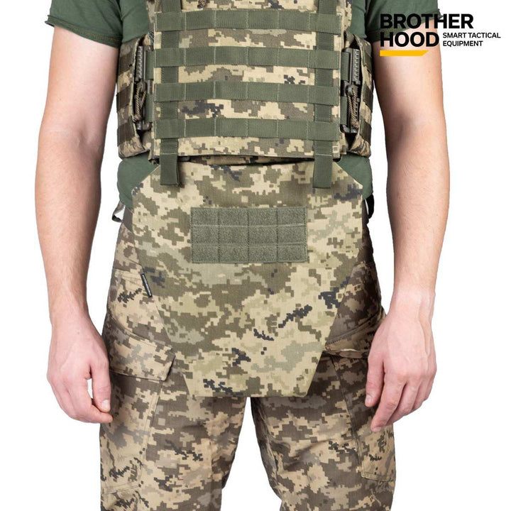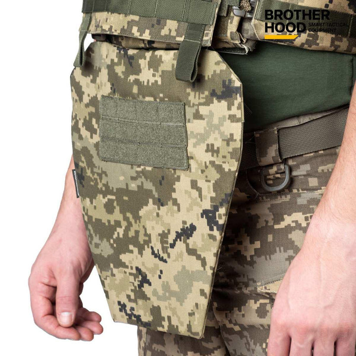 The Brother Hood 2.0 Pixel Ballistic Plate Pocket is designed specifically for tactical vests and systems, providing essential protection for the groin area. With its optimal size of 12.2 x 11.8 inches, this pocket ensures compatibility with standard ballistic plates.