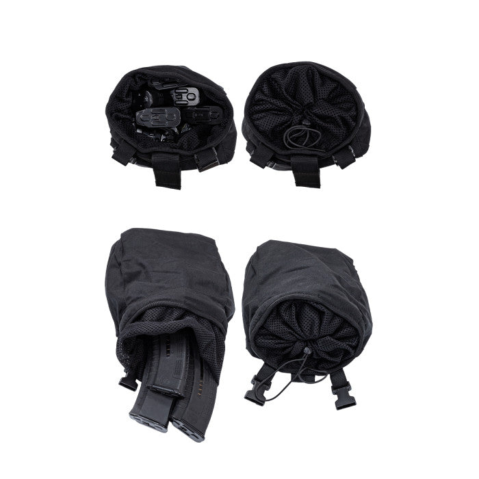 The Black Magazine Dump Pouch is an essential tool for combat situations, designed to facilitate the quick disposal of magazines during active operations. Its durable construction ensures that it maintains an open shape for easy access and use.