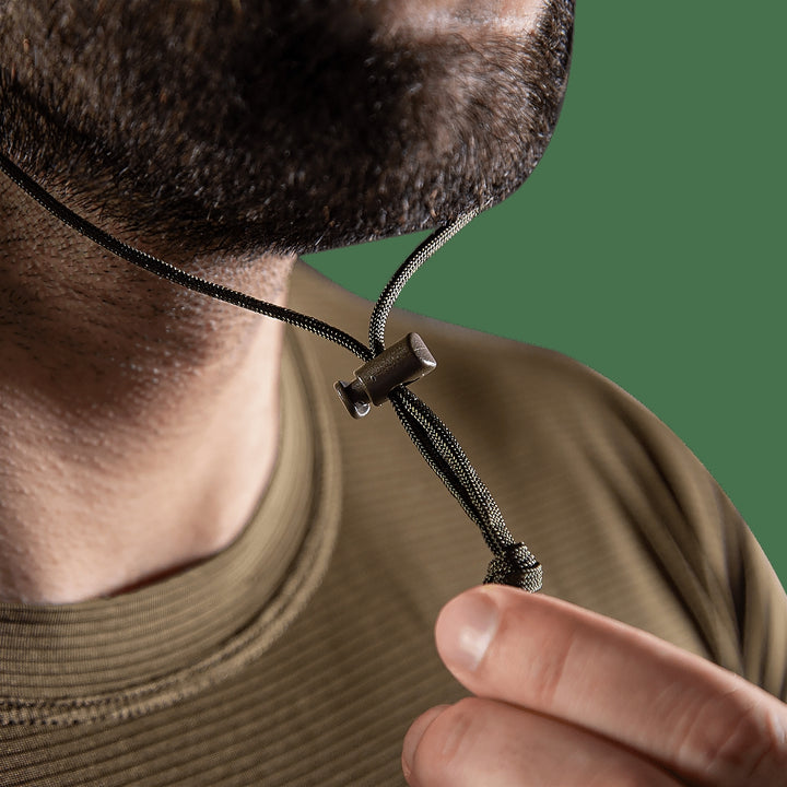 - Adjustable chin cord with a secure plastic lock for a stable fit