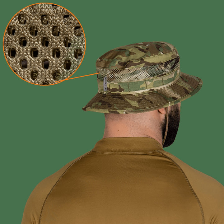 The Boonie Air Multicam (7510) from camotec is a tactical hat designed for field conditions and active outdoor adventures. It combines durability, wear-resistance, and comfort through a careful choice of materials and thoughtful construction.