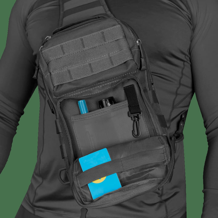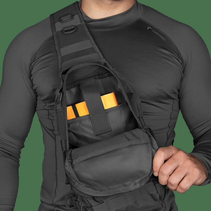 The COB Sling Bag (Black, 7119) from Camotec is a compact and versatile urban tactical bag, perfect for everyday use as well as for security personnel, military applications, hiking, camping, hunting, or fishing. Its ergonomic design ensures comfortable carrying options for all occasions.