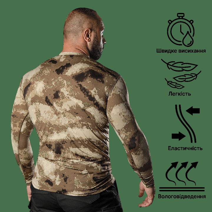 Introducing the CoolTouch A-TACS AU (2206) long sleeve from camotec, a thoughtfully designed garment for active use in hot and humid conditions. This long sleeve combines innovative materials and high-quality hardware, making it a reliable choice for sports, outdoor activities, tactical, and military tasks.