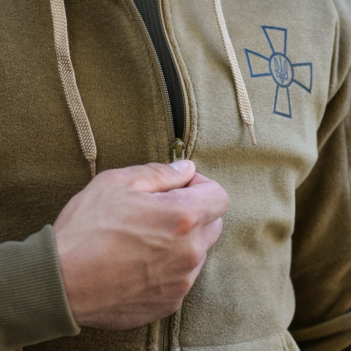 The Ukrainian Armed Forces "Cross" Coyote Fleece Hoodie is the perfect choice for those who value comfort, practicality, and style. Made from high-quality Polartec 300 fleece, this hoodie retains warmth even in wet conditions.