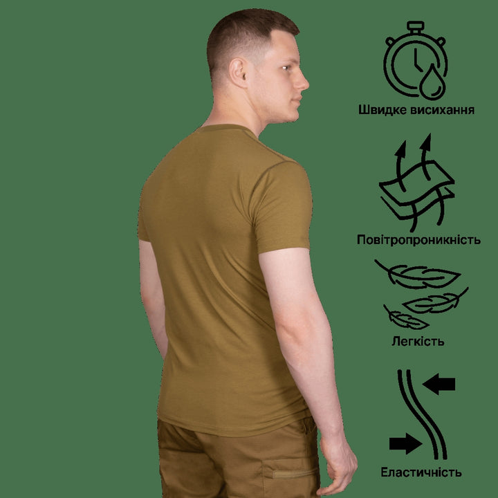 Introducing the Modal Coyote T-Shirt (Golden Trident) from camotec, a versatile piece of military apparel designed for the spring/summer season. This t-shirt combines modern design, comfort, and durability for everyday wear.