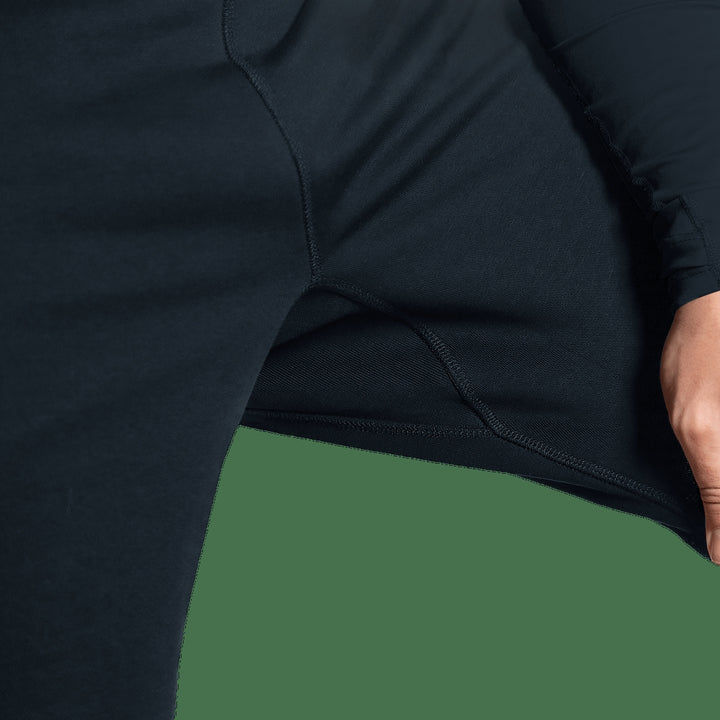 - Anatomical cut with elastic insert in the saddle area for improved comfort and reduced risk of tears during stretching.