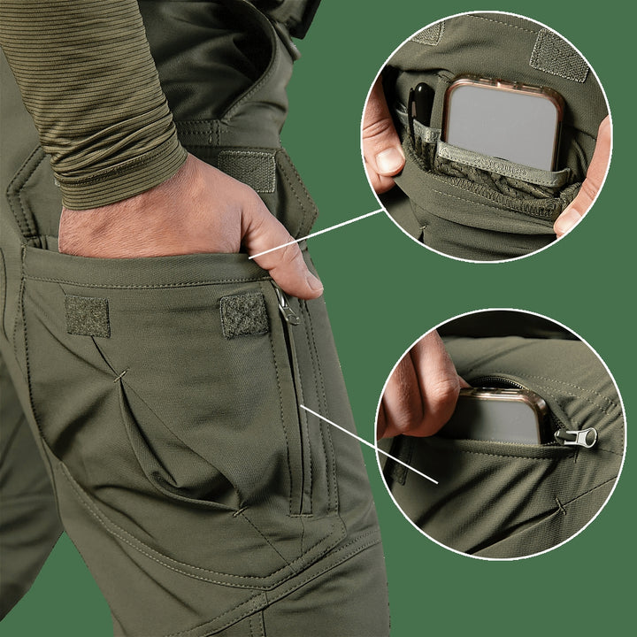 - Multiple pockets, including classic side pockets and cargo pockets with dual access for quick access to gear.
