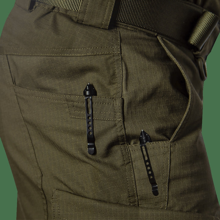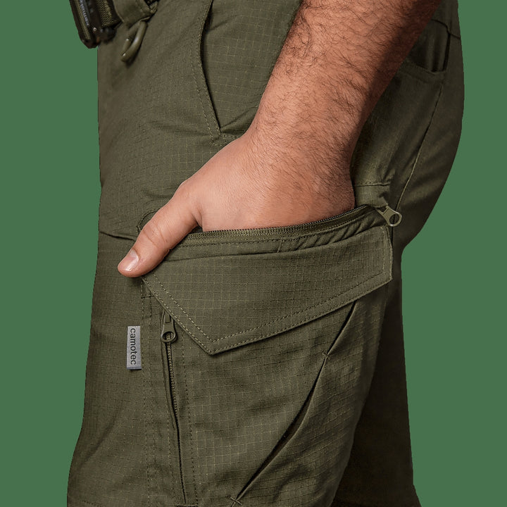 - Classic side pockets with reinforced areas for gear (knife, flashlight, etc.).