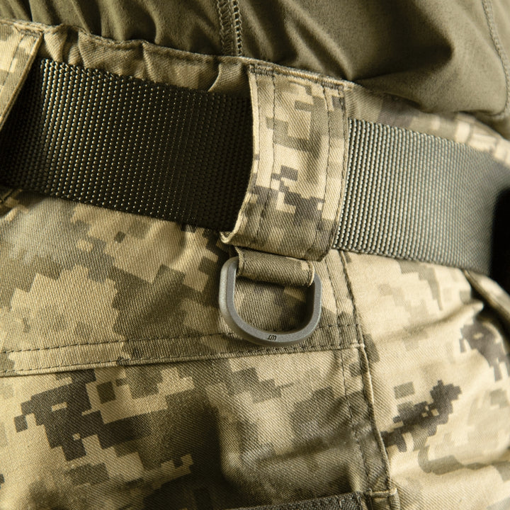 - Sturdy wide belt loops designed to hold tactical belts with holsters or pouches.