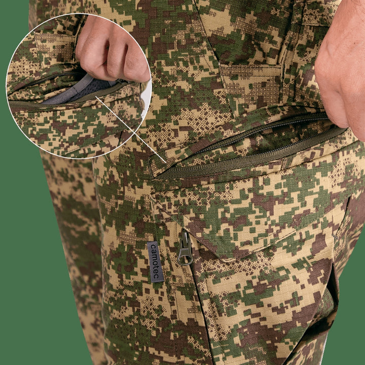 - Classic side pockets reinforced for gear storage (knife, flashlight, etc.).