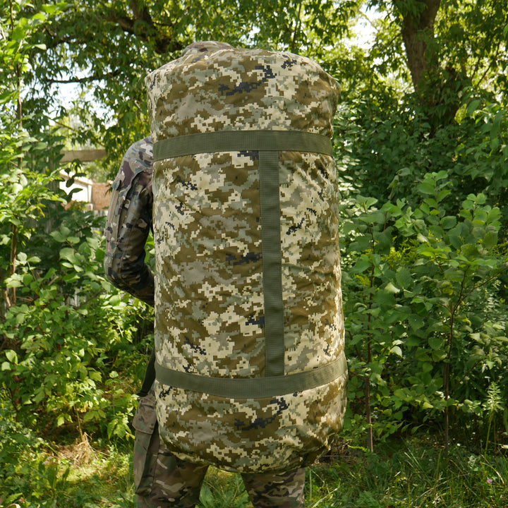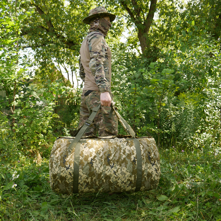 The Kiborg 120 duffel bag is designed for transporting personal belongings and gear, making it an ideal choice for outdoor enthusiasts. Its cylindrical shape accommodates various items, such as sleeping bags and personal gear, ensuring versatile storage.