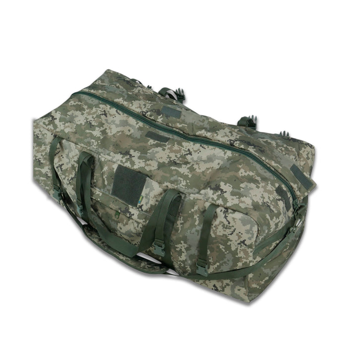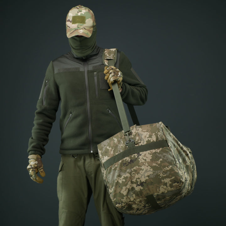 The KIBORG BAG 130L is a spacious and durable bag designed for gatherings, relocations, training, or storing large amounts of gear. With a capacity of 130 liters, it allows for easy transport of significant gear while protecting it from external elements.