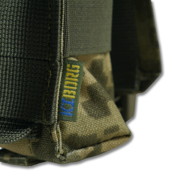 The Kiborg GU Single Mag Pouch is designed for securely carrying a single grenade, crafted from durable 1000D Cordura fabric that resists abrasion and tearing. Its robust construction ensures reliability in demanding environments.