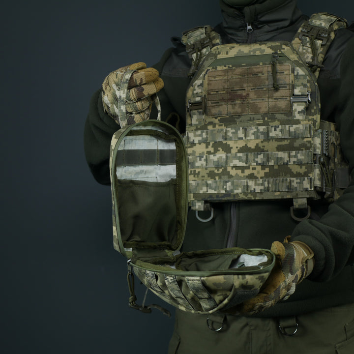 - Internal organization: Molle straps, elastic bands, and two pockets for secure storage of medical supplies