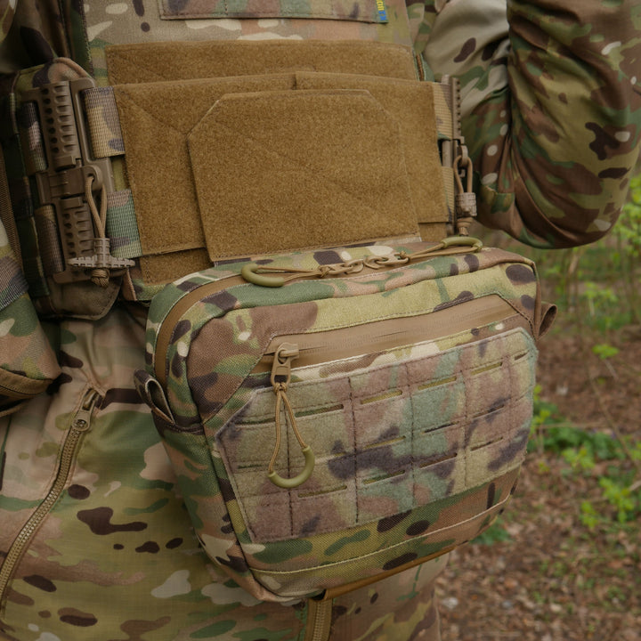 The Kiborg Tactical Pouch is a versatile bag designed for outdoor and military use, crafted from durable 1000D Cordura material that offers exceptional resistance to moisture and wear. Its NIR treatment ensures reduced visibility in night vision devices.