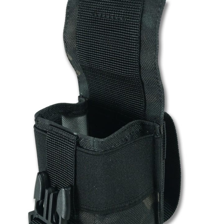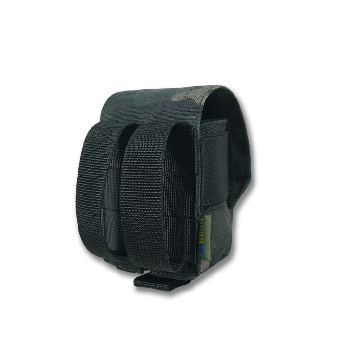 The Kiborg GU Single Mag Pouch is designed for securely carrying a single grenade, crafted from durable 1000D Cordura fabric that resists abrasion and tearing. Its robust construction ensures reliable performance in demanding environments.