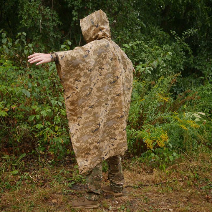 Kiborg Waterproof Poncho with Taped Seams in Pixel Camo