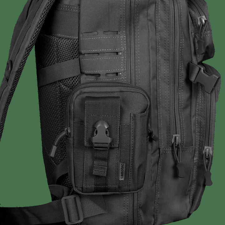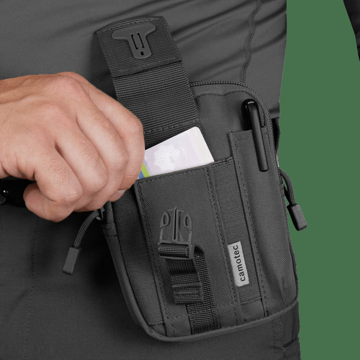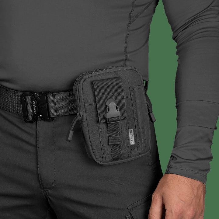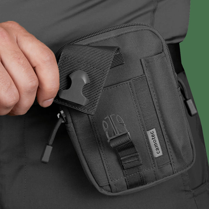 The Kid 3.0 Black Pouch (7111) by camotec is a compact and durable accessory designed for hiking, outdoor activities, and military gear. It's perfect for storing small yet essential items like keys, phones, documents, and other necessities.