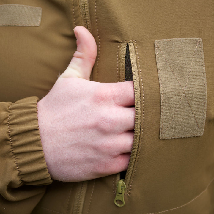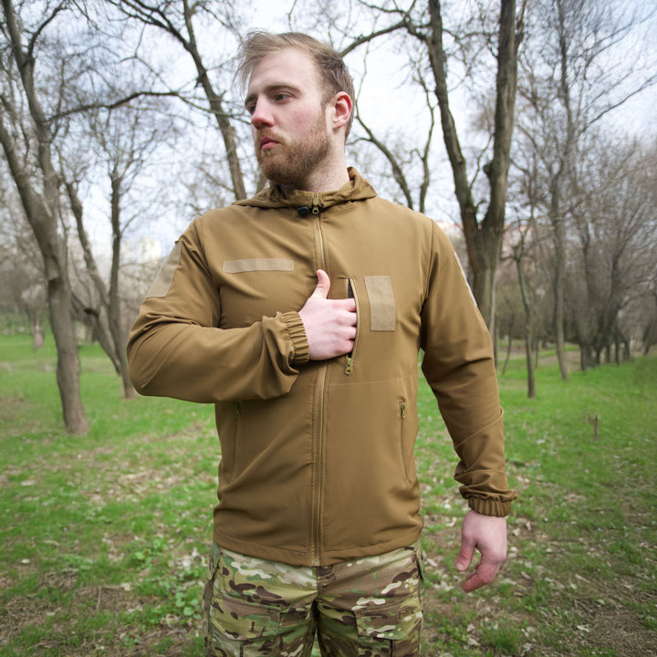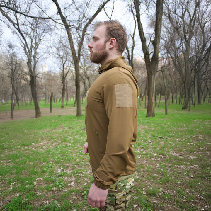 With its lightweight and durable polyester, the jacket maintains its shape and allows for freedom of movement. The DWR coating protects against rain and dampness, making it ideal for tactical tasks, hiking, and everyday use.