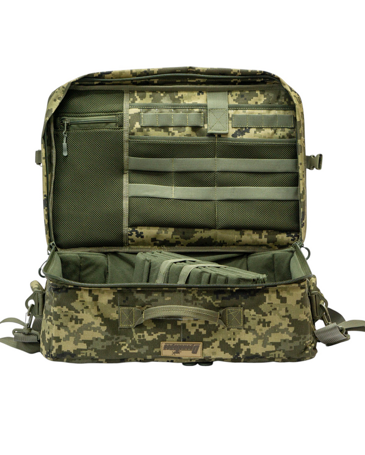 - PALS/MOLLE webbing on the front and bottom for additional gear attachment.