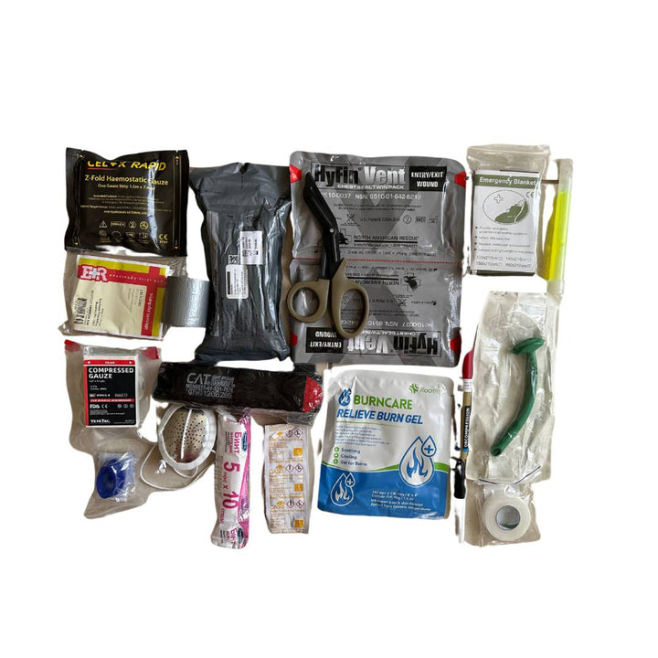 Introducing the ultimate first aid kit at an affordable price, designed for quick response in emergencies. This multi-cam tactical pouch is packed with essential medical supplies for outdoor and military use.