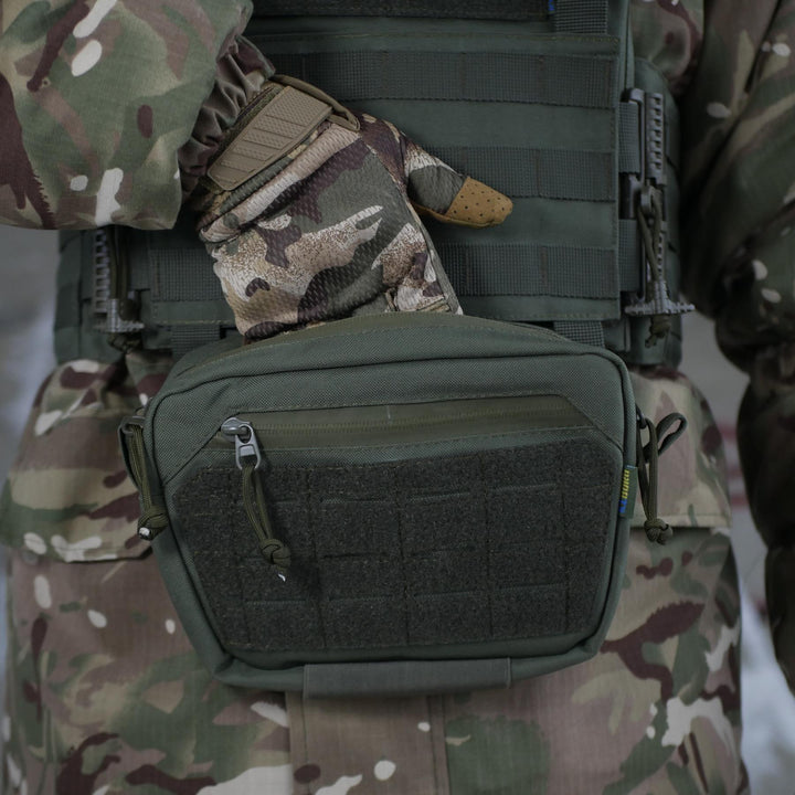 - Hook-and-loop attachment allows secure mounting to plate carriers or vests with Velcro panels.