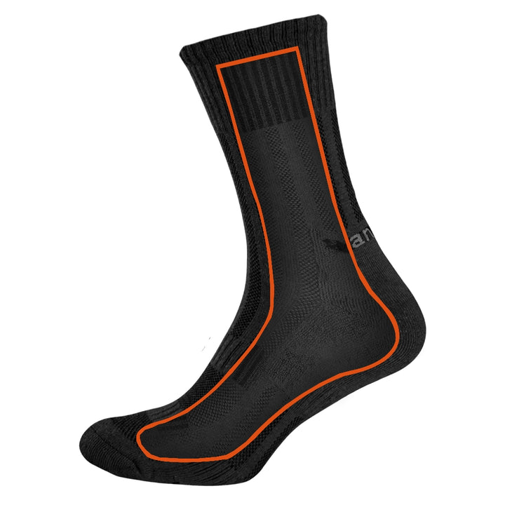The MidAir Pro Black Socks (5790) by camotec are designed for active use in both field and daily conditions, providing essential comfort and protection for military personnel, security forces, hunters, anglers, foresters, and hiking enthusiasts. These socks blend the benefits of natural and synthetic materials, ensuring hygiene, breathability, durability, and a secure fit.