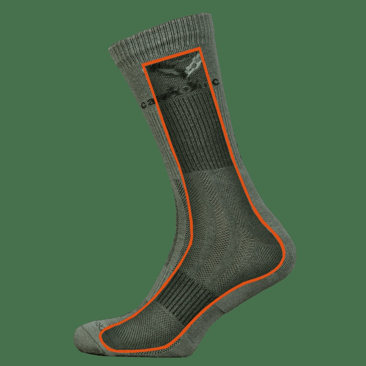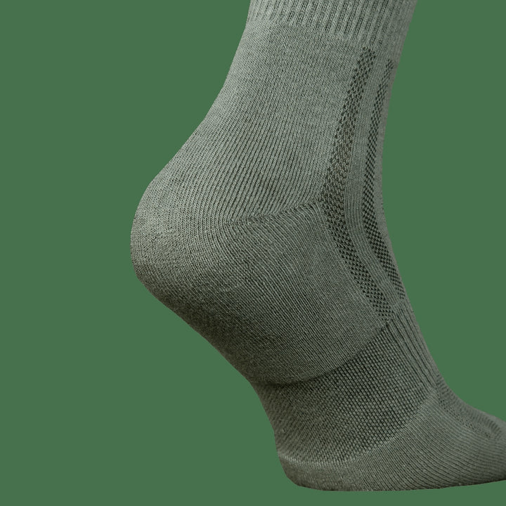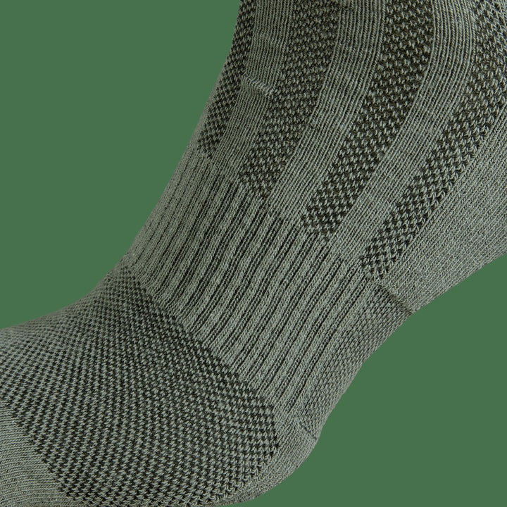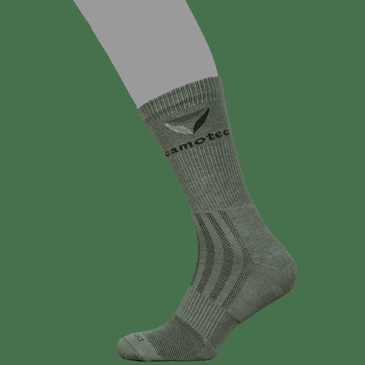 The MidAir Pro+ Socks in Khaki (7055) by camotec are expertly designed for extended wear in field conditions and active movement over long distances. Constructed with premium yarn that combines natural and synthetic fibers, these socks offer exceptional protection, comfort, and a secure fit.