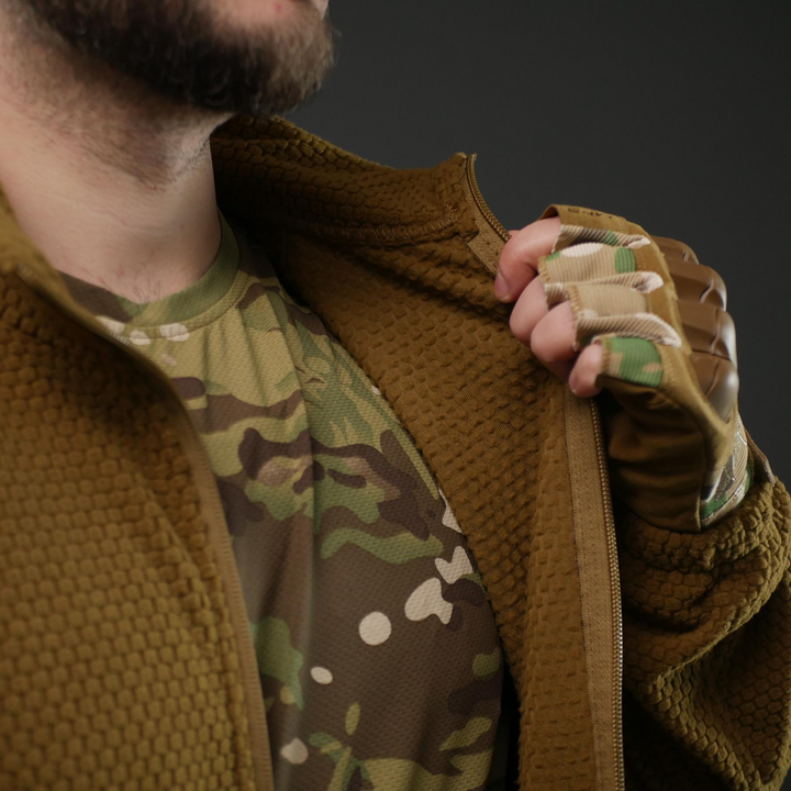 The Militex mod. 6 Windproof Fleece Jacket in Coyote is designed for those who refuse to compromise on comfort and practicality. Ideal as an insulating layer in cold weather or as an outer layer during dry transitional seasons.