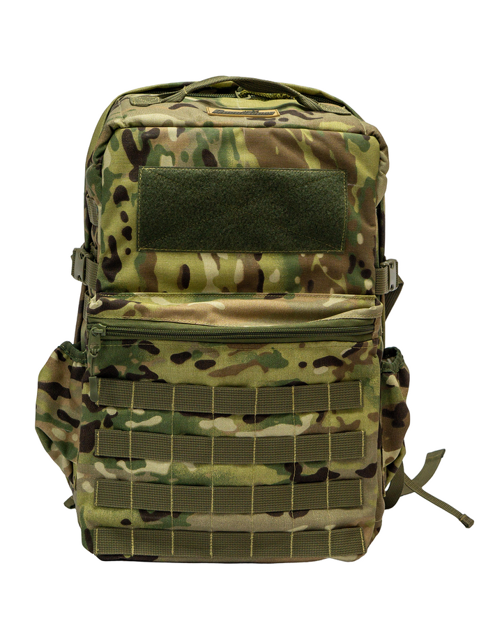 - PALS/MOLLE webbing on the front, sides, and bottom for modular attachments.