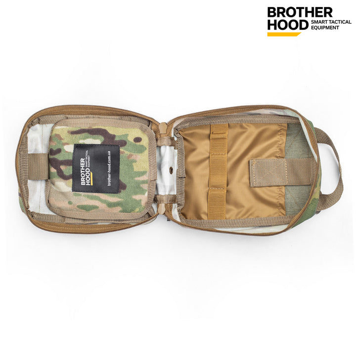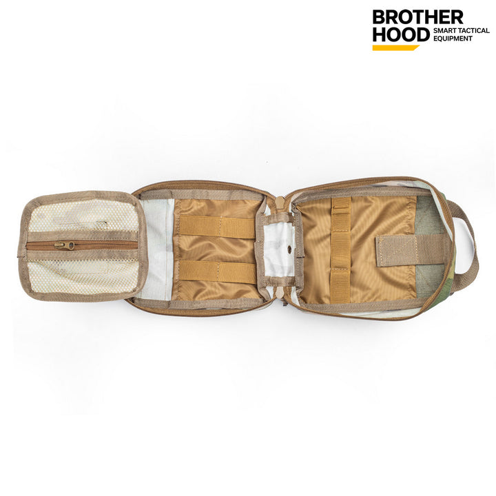 The Brother Hood Medical Pouch in Multicam-Coyote is an essential tactical accessory designed for professionals who prioritize safety and organization. This pouch ensures quick access to medical supplies while offering ample storage and versatile mounting options.