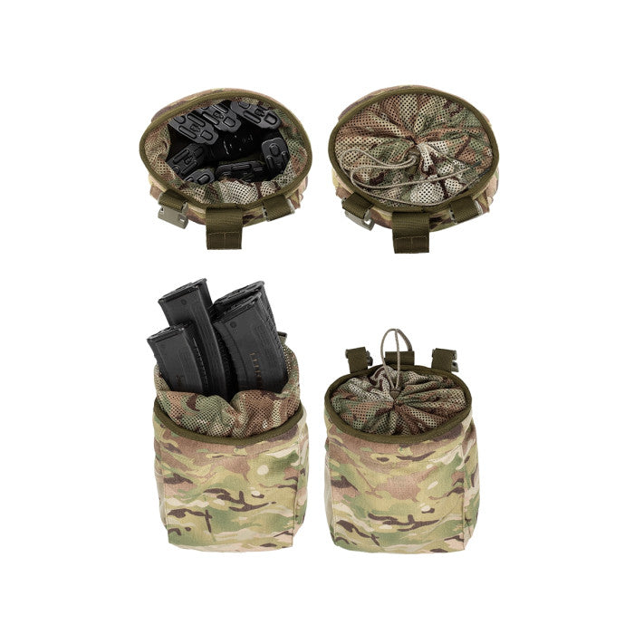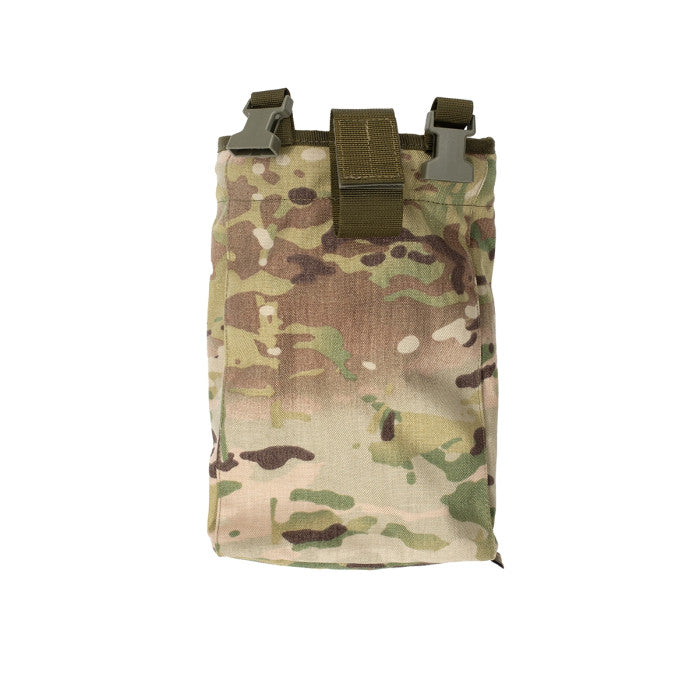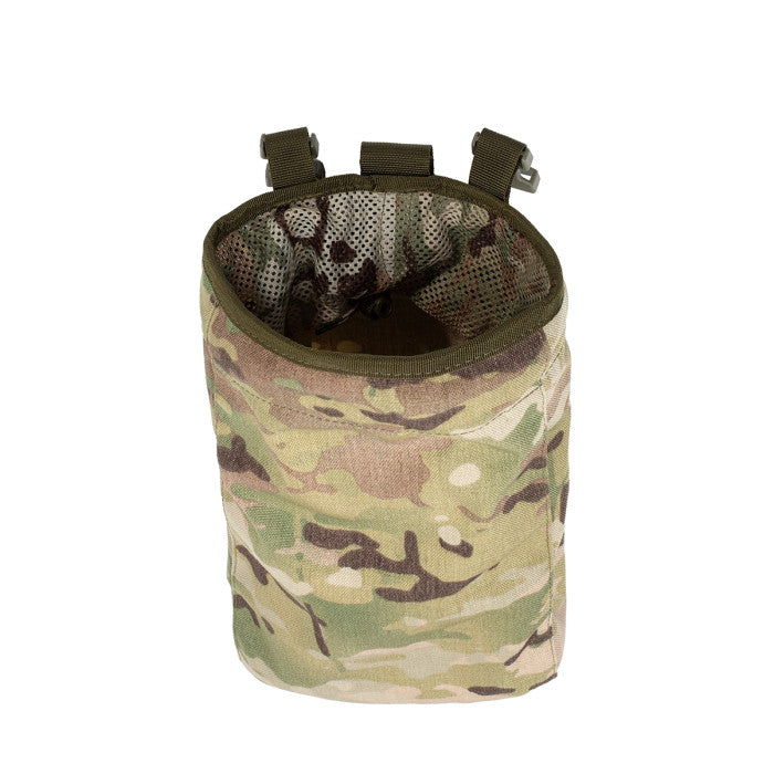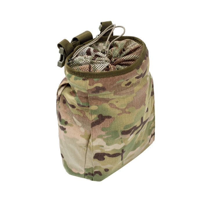 The MultiCam Dump Bag is an essential tool for combat situations, designed to allow for quick and efficient magazine drop during active operations. Its robust construction ensures that it maintains its shape and remains open for easy access.