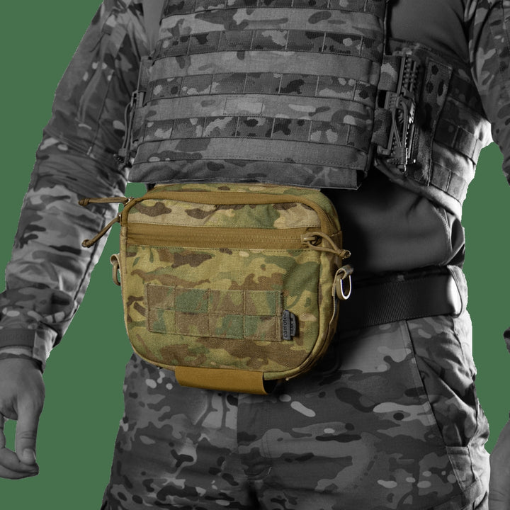 The Multicam Tactical Pouch (Model 8428) by Camotec is a large tactical pouch designed for professional military personnel and specialists who require maximum capacity and quick access to gear. Constructed from durable nylon with a polyurethane coating, it offers water resistance and enhanced wear resistance.