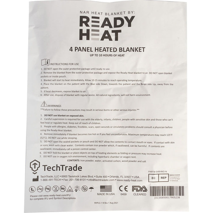 The NAR Ready Heat® Blanket is designed for immediate warmth, providing essential heat for military medics and outdoor enthusiasts alike. With its patented technology, this blanket delivers 10 hours of continuous dry heat up to 125°F (52°C) right out of the package.