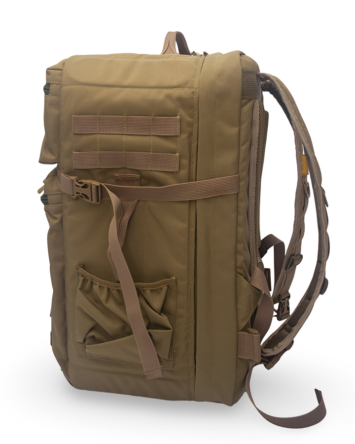 - 1000D nylon Cordura with IRR treatment, Velcro nylon and polyester lining, high-density webbing, YKK or equivalent zippers