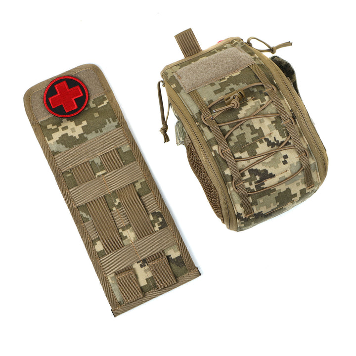 The NOVA Medical Pouch in Pixel camouflage is designed as a reliable and functional component of combat gear, adhering to the IFAK (Individual First Aid Kit) standard. Crafted from durable Cordura fabric, this pouch offers exceptional strength and resistance to tearing, ensuring longevity and safety in extreme conditions.