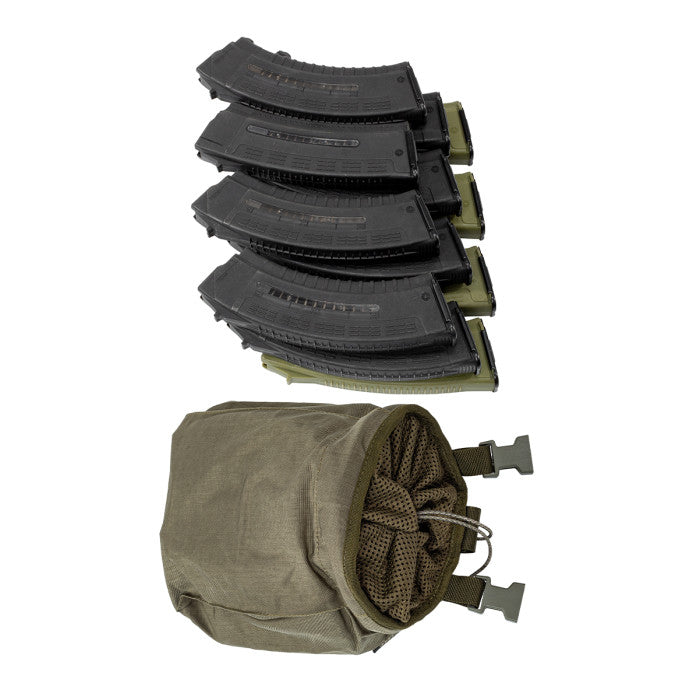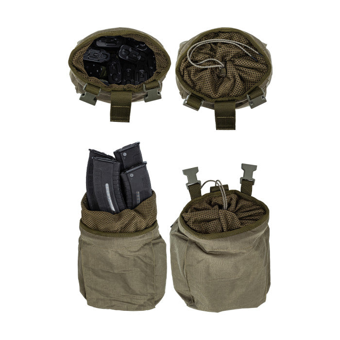 The Magazine Drop Bag in Olive is an essential tool for combat situations, allowing for quick and efficient magazine drops during active operations. Its durable design ensures that the bag remains open and ready for use.