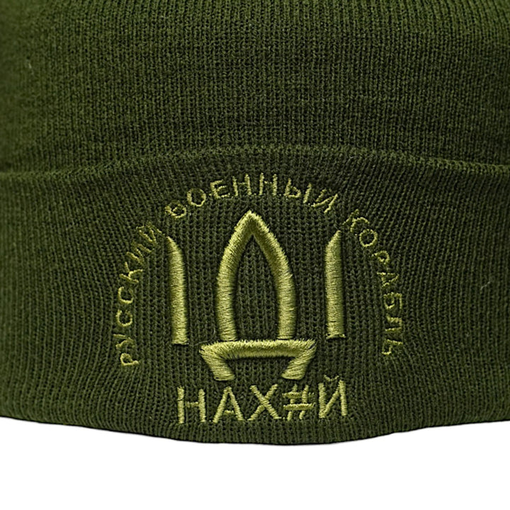 The "Russian Warship" knitted beanie in olive is the perfect choice for those who value style and individuality. This uniquely designed beanie, inspired by a famous phrase, is crafted in an attractive olive color, making it an excellent addition to your winter wardrobe.