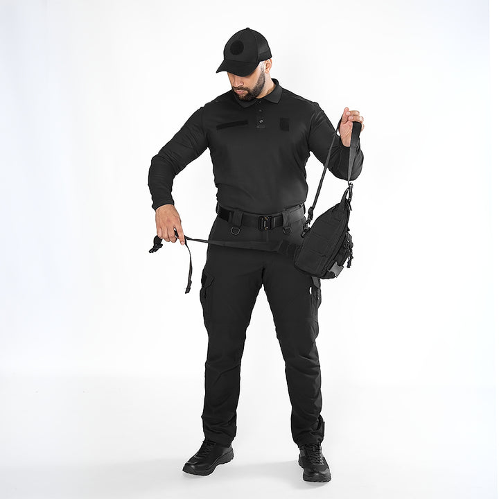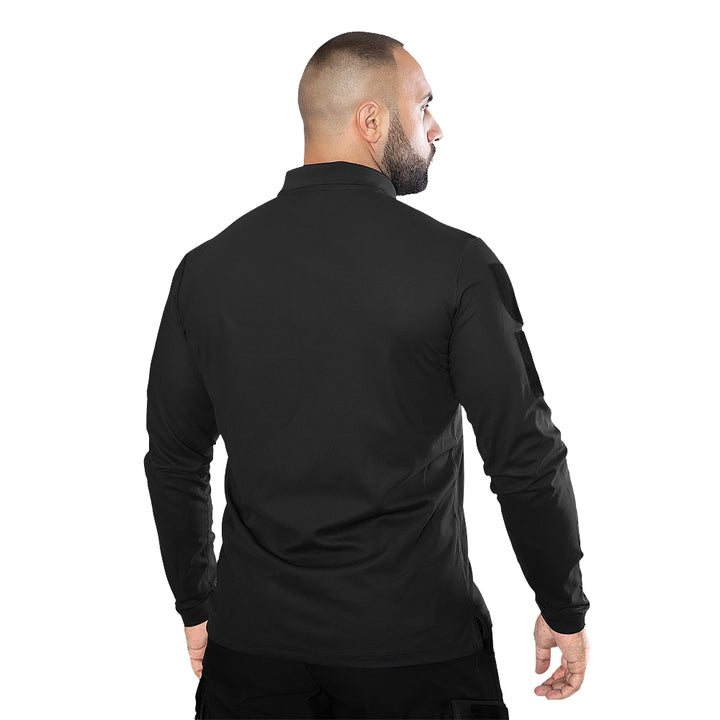 The Paladin 2.0 Long CoolPass LT Black Polo is a tactical long-sleeve polo designed for police and security personnel, offering enhanced functionality, comfort, and durability. Its ergonomic design ensures a great fit, freedom of movement, and comfort during extended wear.