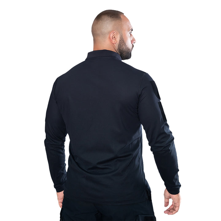 The Paladin 2.0 Long CoolPass LT Polo in dark blue (8890) is a professional long-sleeve tactical polo designed specifically for police and security personnel, combining comfort, functionality, and durability. This polo provides optimal ventilation and moisture-wicking capabilities during active duty with its innovative CoolPass Pique Light fabric.