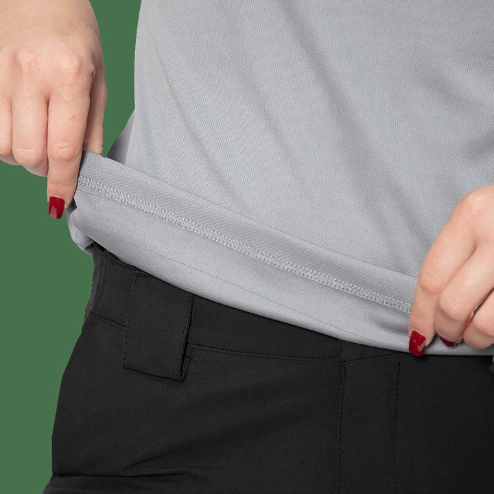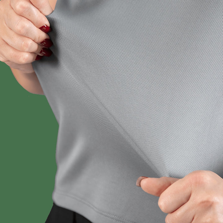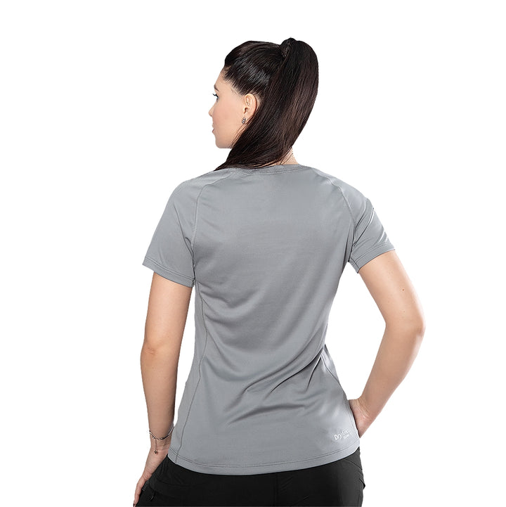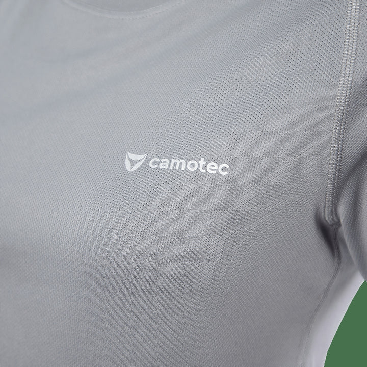 The Pani FitPro Gray T-Shirt (9194) is a women's athletic tee from the Camotec brand, designed for everyday wear, outdoor activities, and intense sports training. This model combines modern design with high-tech materials and ergonomic features tailored for the female figure.