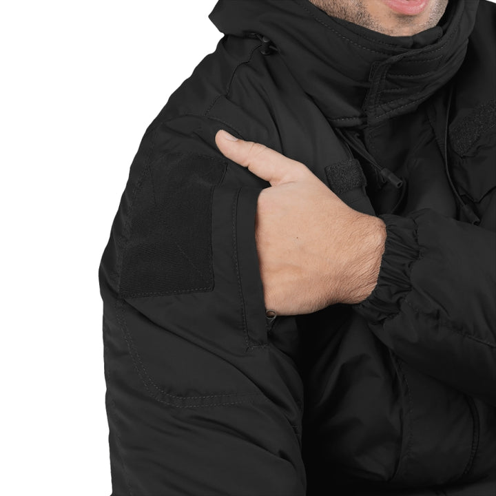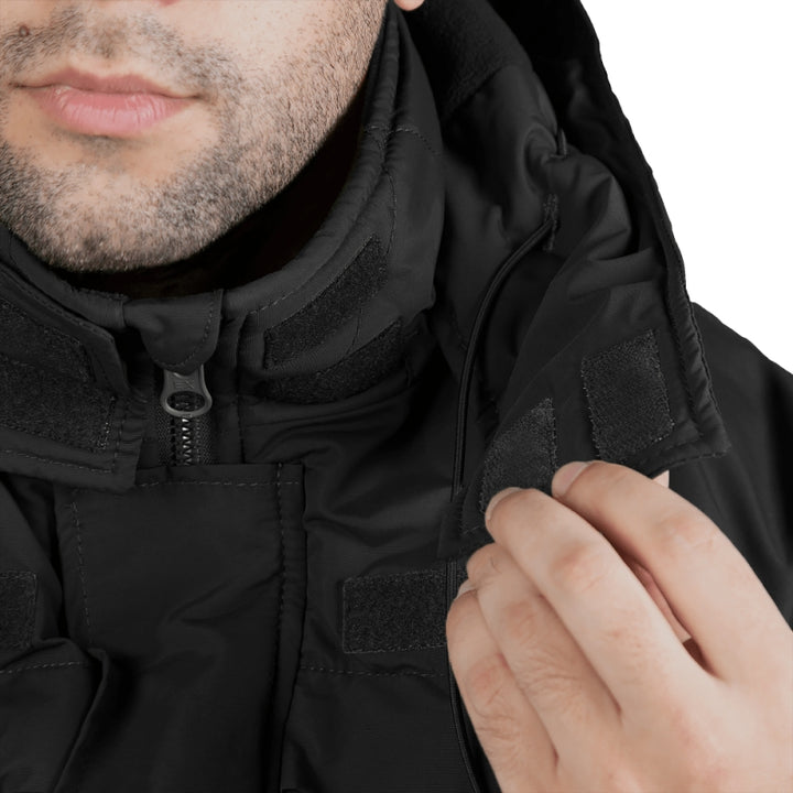 The Patrol System 2.0 Winter Jacket in Nylon Black (6578) by Camotec is a practical and durable outerwear solution designed for military and security personnel. Crafted from innovative Nylon Taslan, this jacket offers reliable protection against wind and moisture, making it ideal for demanding conditions.