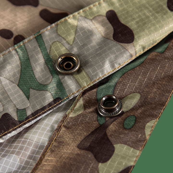 The Pilgrim 2.0 Rip-Stop Multicam Poncho from Camotec is a versatile and functional protective cover that combines the properties of a raincoat, tarp, and tent cloak. Its innovative design allows for easy connection with other ponchos to create a full tent for group use.