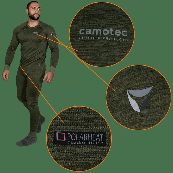 The Polarheat QS Pro 2.0 thermal underwear in Olive Melange (SKU 7365) is an advanced first layer designed for those who value both functionality and aesthetics. This updated version features improved fit and a range of enhancements for use in low and extreme low temperatures.