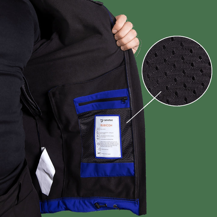 The Rubicon SoftShell Jacket in blue (Model 7493) is a versatile choice for outdoor activities, hiking, and everyday wear. Combining modern outdoor design with thoughtful functionality, this jacket is essential for those who value comfort, weather protection, and style.
