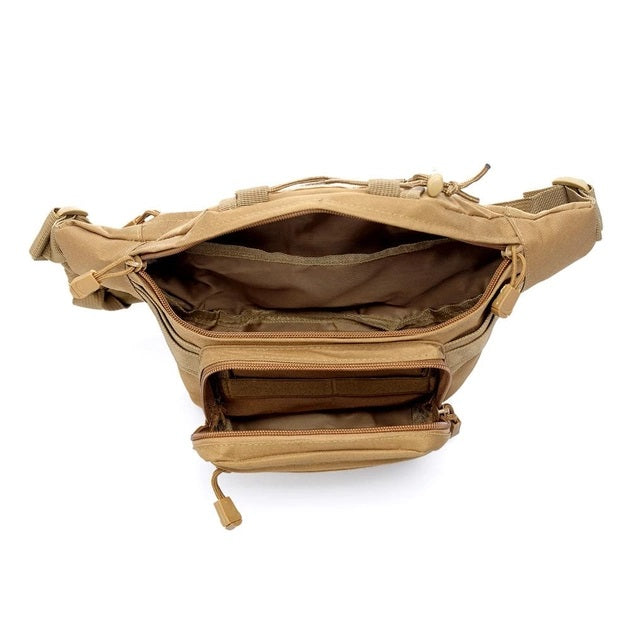 The tactical waist bag is designed for versatility and convenience, featuring multiple compartments to keep your essentials organized and easily accessible.