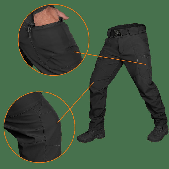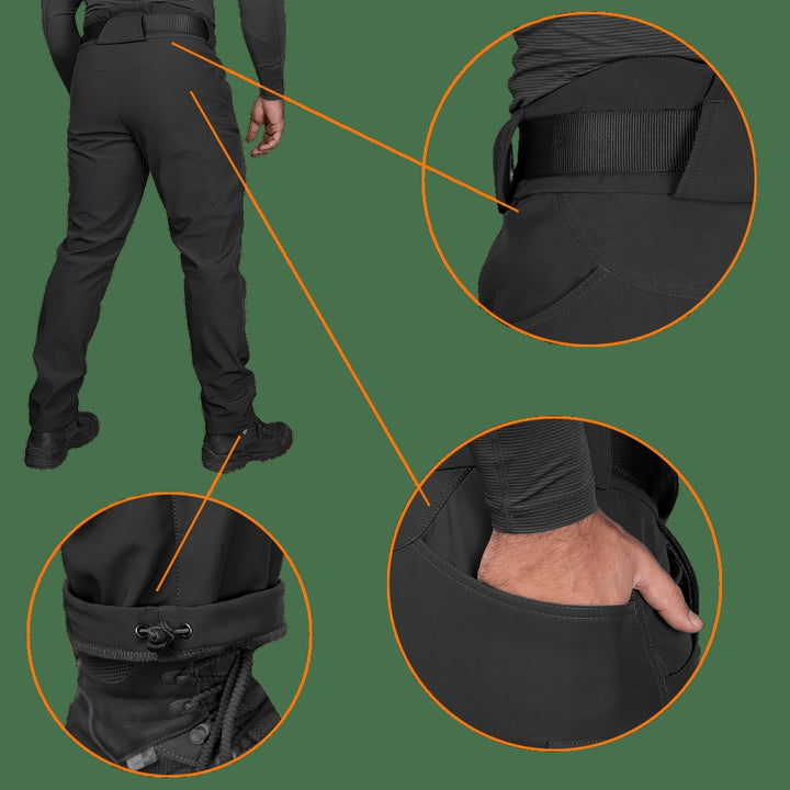 The SoftShell Vent Pants in Black (7364) by Camotec are designed for military and tactical use, offering optimal protection against wind and moisture while ensuring comfort during extended wear. These pants combine functionality and durability, making them ideal for security and military personnel.