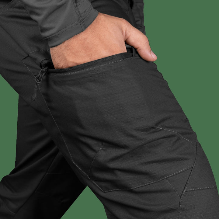 Introducing the Stalker 3.0 Twill Tactical Suit in Black (7598) from camotec, designed specifically for security and paramilitary operations. This suit is the optimal choice for the spring/summer season, offering exceptional durability and ergonomic design for professional use.