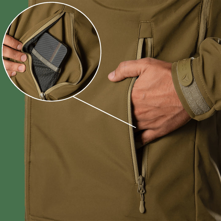 The Stalker SoftShell Jacket in Coyote (7346) by Camotec is designed for versatility and performance in the field. Its combination of lightweight, breathability, and weather protection makes it an ideal choice for both outdoor activities and everyday wear.